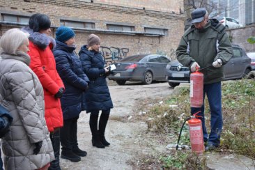 Після ознайомлення з будовою вогнегасника та правилами його використання проведено практичне заняття щодо гасіння імпровізованої пожежі. Роботу порошкового вогнегасника ВП-6 продемонстрував головний спеціаліст відділу управління майном та охорони праці управління з питань управління майном та контролю за його використанням Павло Царенко, після чого кожен працівник мав змогу отримати практичний досвід використання цього первинного засобу пожежогасіння.