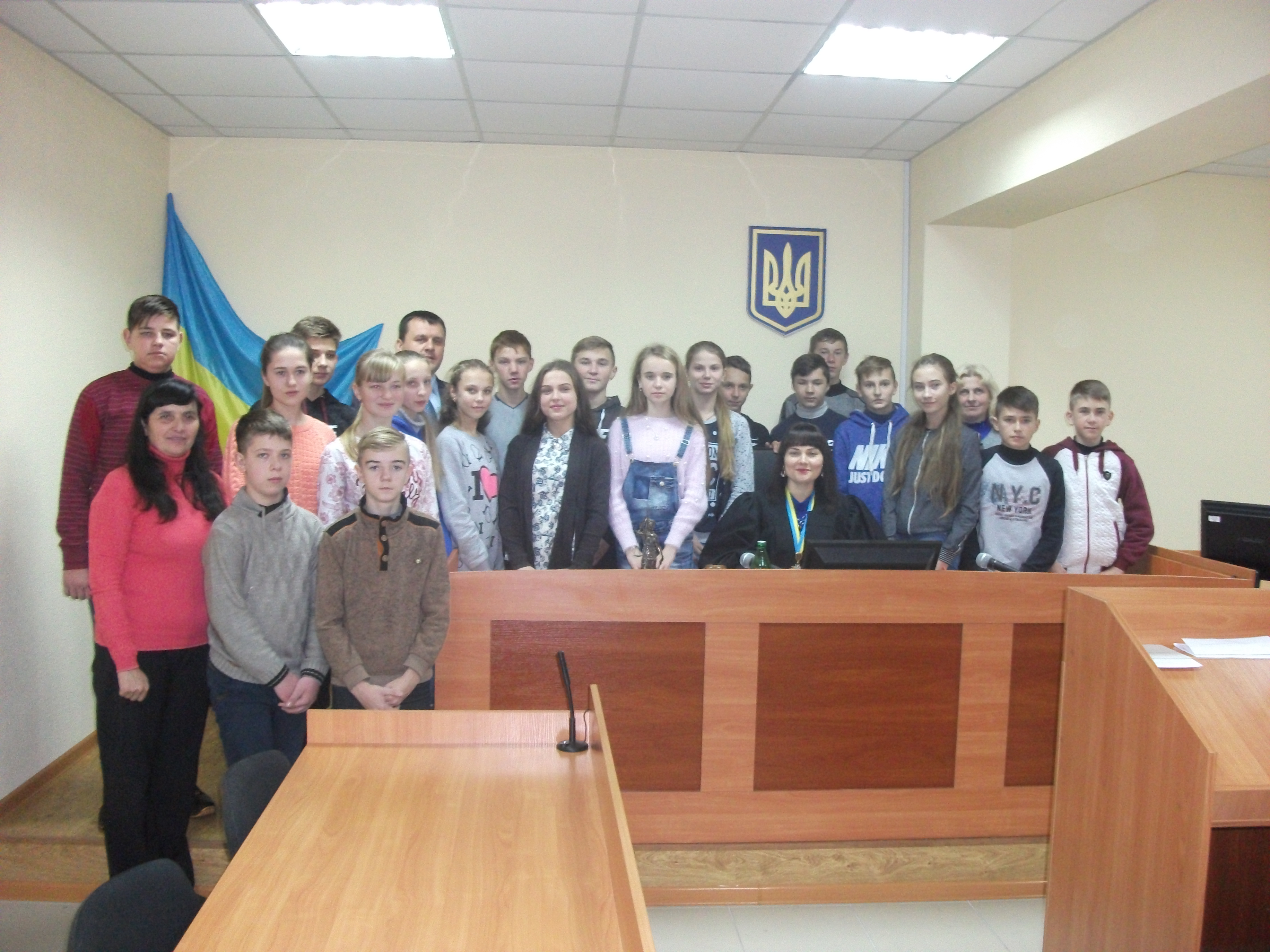 Учні із захопленням спостерігали за модельним судовим процесом.