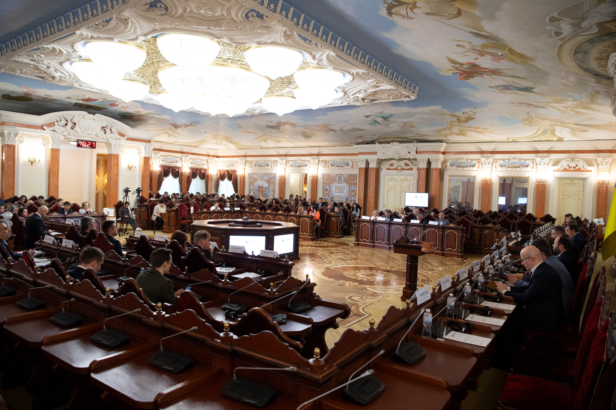 Про основні аспекти співробітництва України з МКС та практику використання інших механізмів у розслідуванні найтяжчих злочинів, які зараз вчиняються на території України, поінформував учасників заходу представник Департаменту протидії злочинам в умовах збройного конфлікту Офісу Генпрокурора Микола Говоруха. Одним із досягнень співпраці з МКС стало доповнення КПК України відповідним розділом, який унормовує міжнародно-правову співпрацю України з інституцією. Доповідач звернув увагу й на те, що Україна, на відміну від інших країн, проводить розслідування безпосередньо під час збройного конфлікту, а не після його завершення, що вносить певні особливості у співпрацю з МКС та розслідування зокрема. Він також відзначив суттєву перевантаженість правоохоронних і судових органів через велику кількість зареєстрованих воєнних злочинів та додав, що допомога міжнародних партнерів є вкрай важливою. Завдяки співпраці ОГП та МКС зараз вже зареєстровано чотири ордери на арешт керівників рф та окреслено подальші напрями роботи.