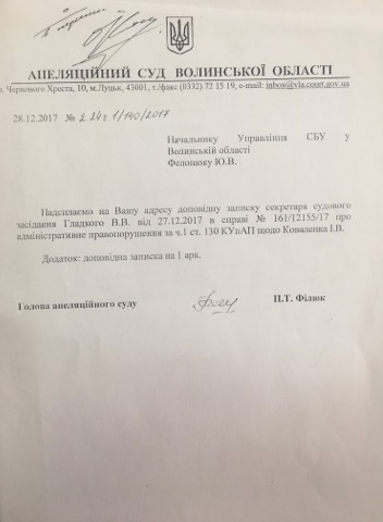 Щодо двох таких випадків головою Апеляційного суду Волинської області уже проінформовано Управління Служби безпеки України у Волинській області (копії долучаємо).