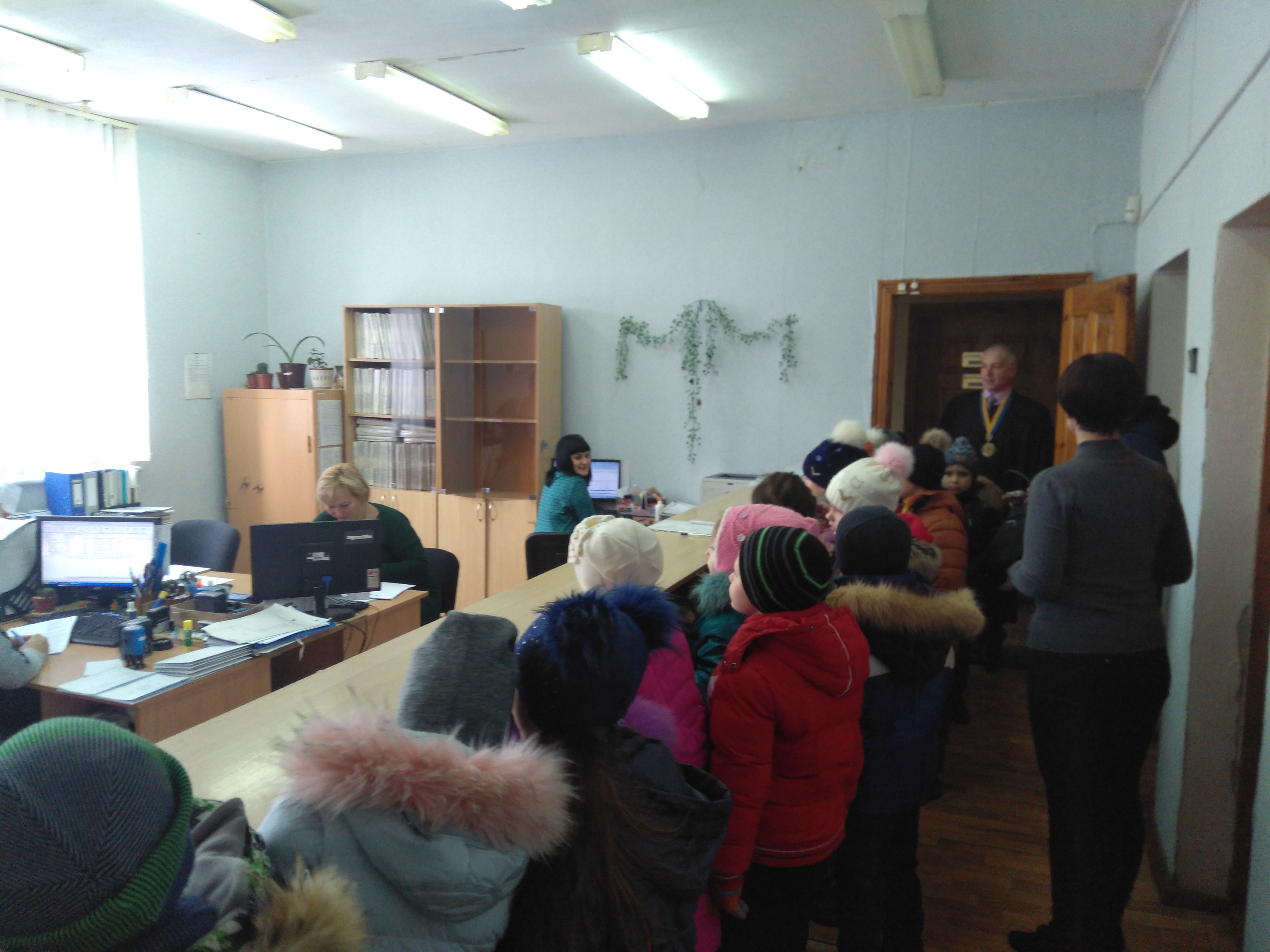 Зустріли учнів суддя-спікер Цвітайло Павло Вікторович і заступник керівника апарату Ярослава Павленко, яка виконує обов’язки прес-секретаря суду. Ярослава Іванівна провела коротку екскурсію приміщенням суду. Діти відвідали канцелярію, архів суду, де подивилися як зберігаються судові справи.