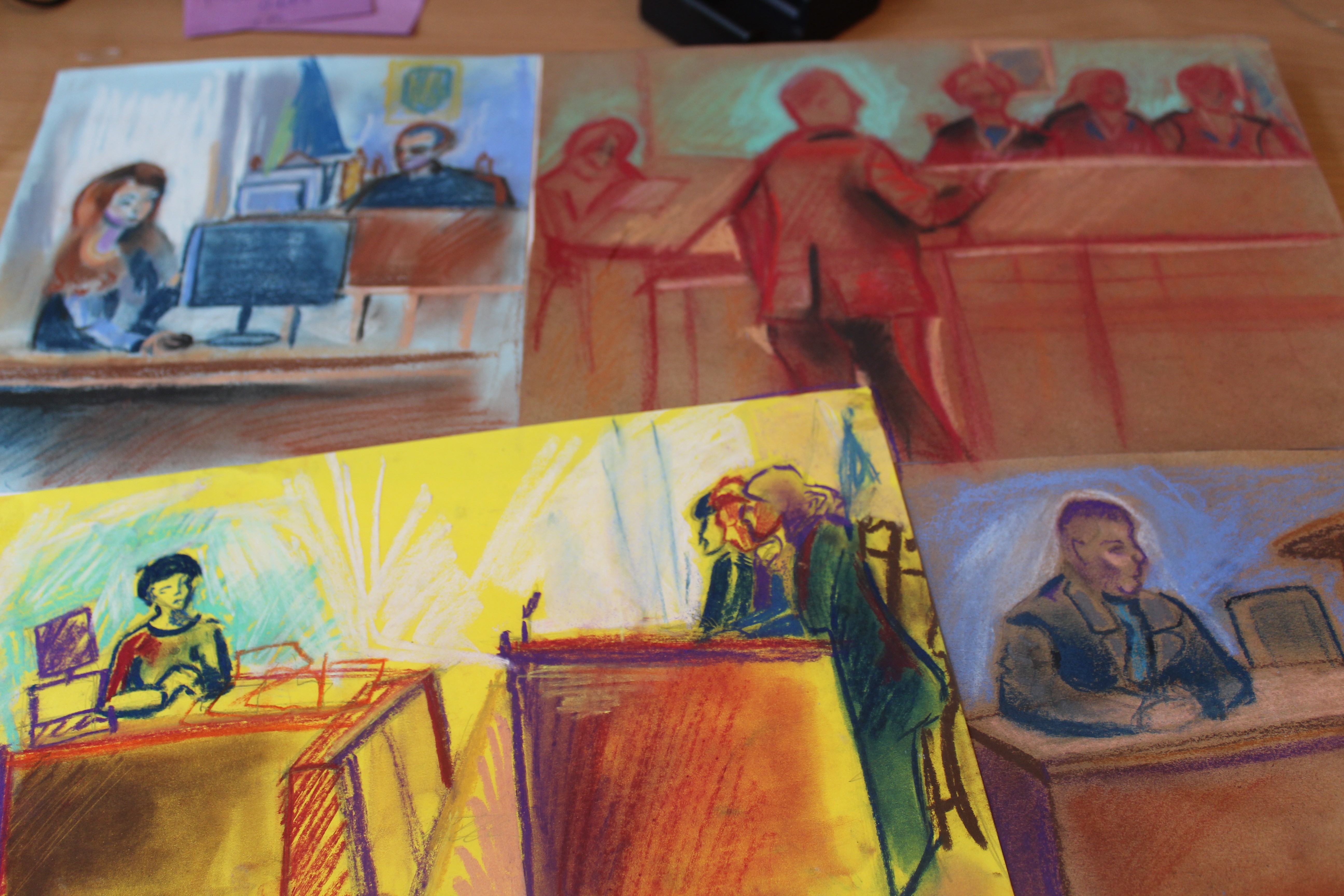 Студенти зазначають, що робота досить складна, але окремі сцени судового процесу, учасники, робота суддів слугують для них джерелом натхнення і до того ж, за їх словами, до цього часу вони нічого подібного не малювали.