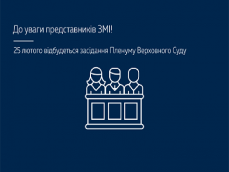 25 лютого 2022 року о 10:00 у приміщенні Верховного Суду за адресою: вул. Пилипа Орлика, 8 (Кловський палац) розпочнеться засідання Пленуму Верховного Суду.
