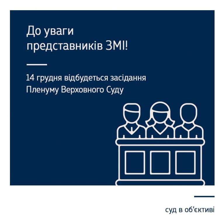 14 грудня 2017 року о 10:00 відбудеться засідання Пленуму Верховного Суду.